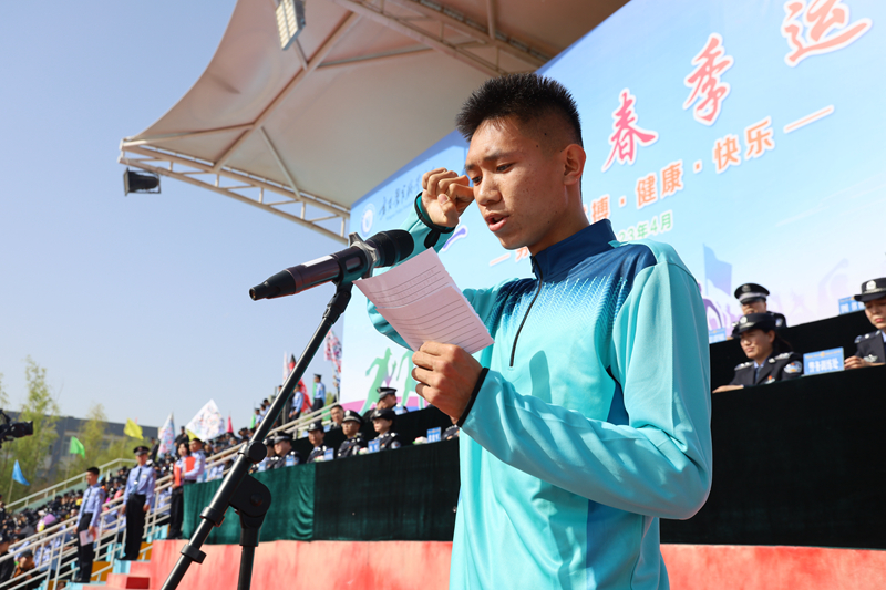 在热烈的气氛中,学院党委副书记、院长张德军致开幕词。他指出,此次运动会既是对广大师生走出新冠肺炎疫情阴霾,积极开展体育活动的一次训练成果展示,也是对学院警务实战教学改革的一次检验。运动会进一步丰富了校园文化生活,始终把锻炼强健体魄、磨炼坚强意志、训练警务技能作为夯实体能储备、提高实战能力的重要内容,激发师生体会运动的快乐和参与体能锻炼的热情,培养师生团队精神和不怕困难、不畏挫折、顽强拼搏的优良品质,充分展示学院事业蓬勃向上的精神风貌。