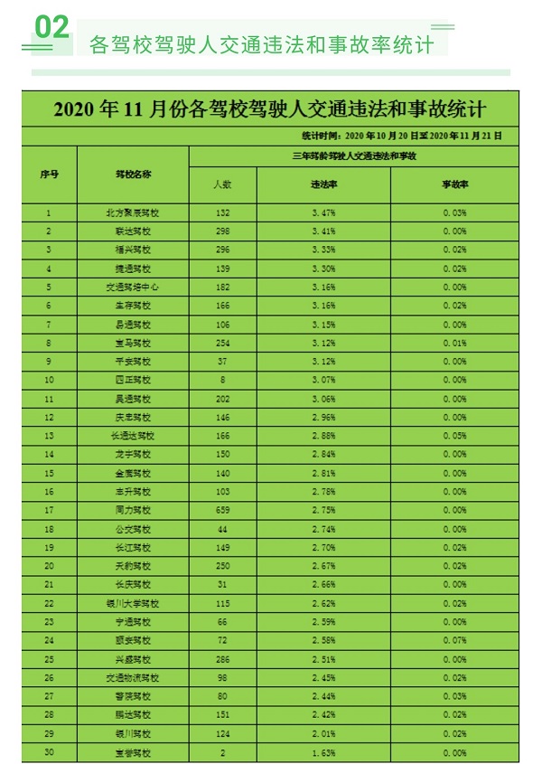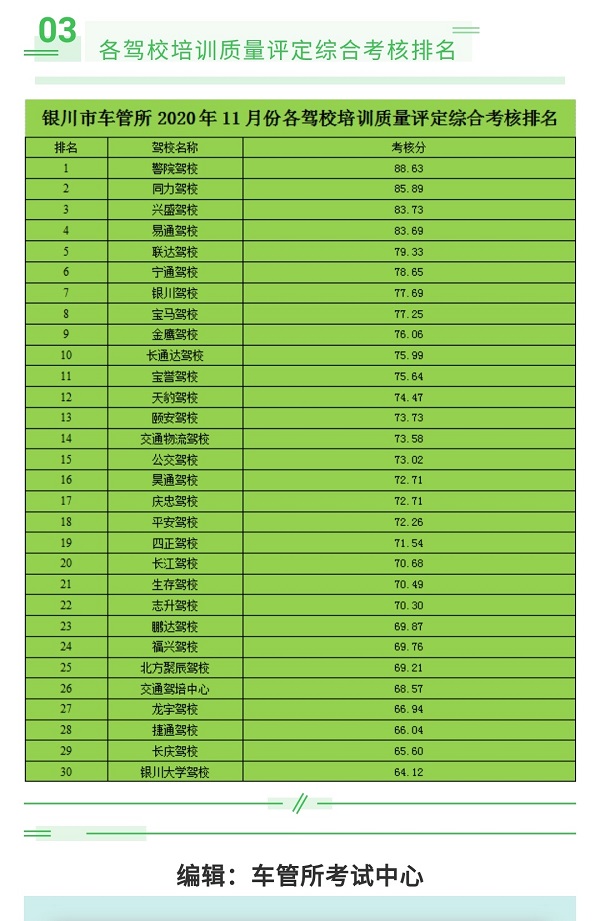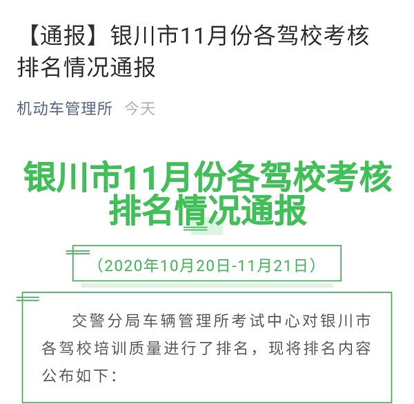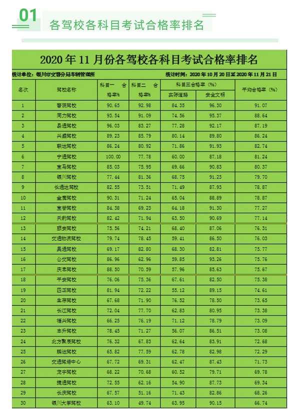 银川市11月份各驾校合格率通报