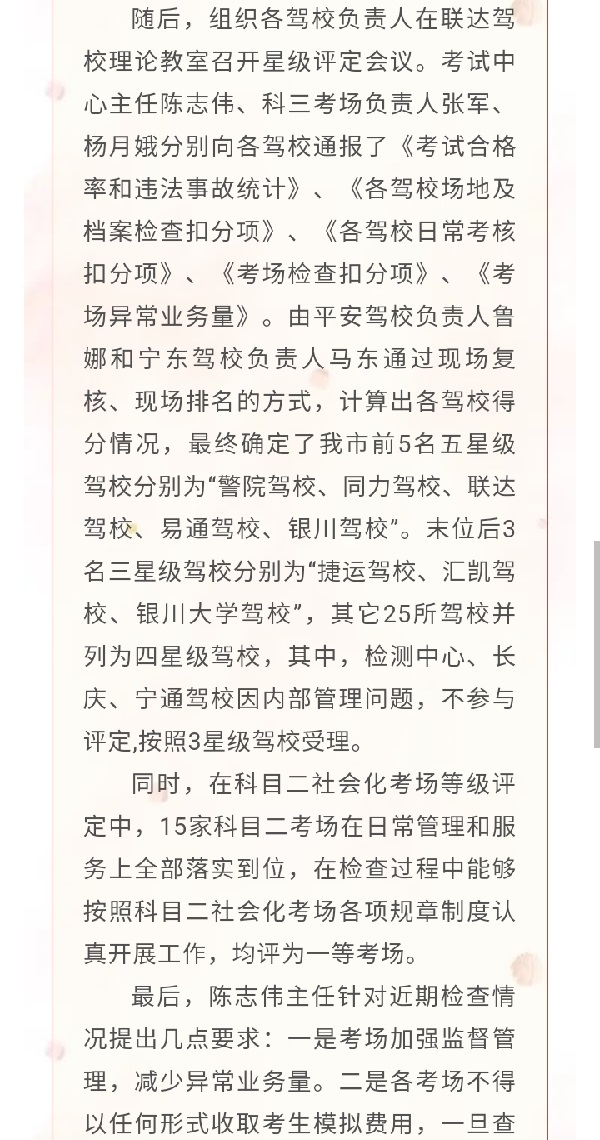 银川市车管所召开2021年第三季度驾校星级评定