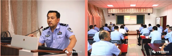 基础部党支部王涛同志的党课“抗疫故事背后的中国精神”,通过刘仙、赵冰等人的抗疫事迹和一封来自警嫂感人肺腑的战疫家书,结合当前战疫背景,深度解读了中国人民在抗疫斗争中体现出“万众一心、同舟共济”的守望相助精神,“闻令而动,雷厉风行”的英勇战斗精神,“顾全大局,壮士断腕”的一盘棋精神,“舍生忘死,逆行而上”的英雄主义精神和“充满信心,敢于胜利”的积极乐观精神。