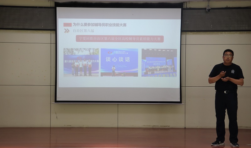 全区“最美辅导员”宿倡维老师通过结合自身参加全区辅导员素质能力大赛经历,向全体辅导员介绍了为什么要参加辅导员素质能力大赛,辅导员素质能力大赛的备赛过程以及参加辅导员素质能力大赛的几点思考,引导辅导员应加强学习,掌握大学生思想政治教育方面的理论与方法,提高文化素质,开展理论研究,进行实践探索,不断提高对学生成长发展的科学引导。