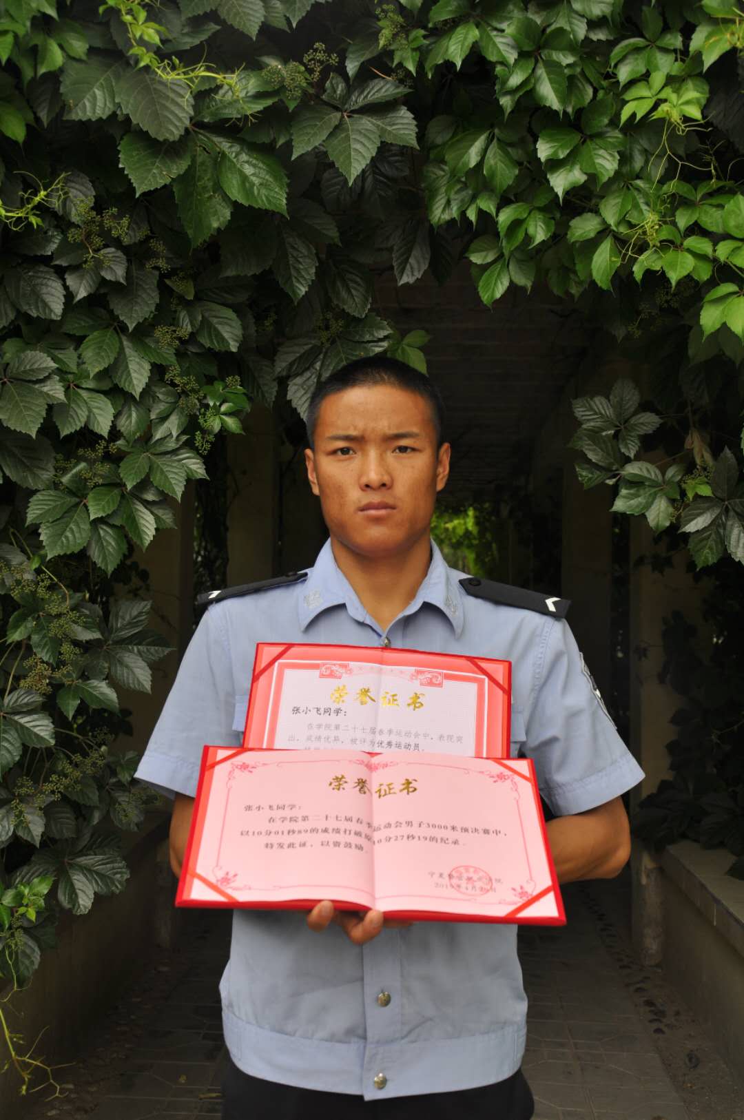 张小飞,行政执行1701区队学员,他不断挑战自我,超越极限,是运动场上的佼佼者,他用汗水、毅力、拼搏创造一个又一个的奇迹……在学院第二十六届春季运动会上取得男子组800米第一名、3000米第一名、5000米第一名;在学院第二十七届春季运动会取得男子组800米第一名、3000米第二名、5000米第三名的优异成绩,并获得“优秀运动员”称号。在他辉煌的背后,是努力、拼搏的身影,是一点一滴的辛勤付出。在学习工作中的他,认真刻苦、孜孜不倦,通过努力获得系部“优秀学员”称号。在思想上,他积极向党组织靠拢,是一名优秀的入党积极分子。除此之外,还参加了2018年宁夏回族自治区60周年庆典安保工作,并获得荣获证书。