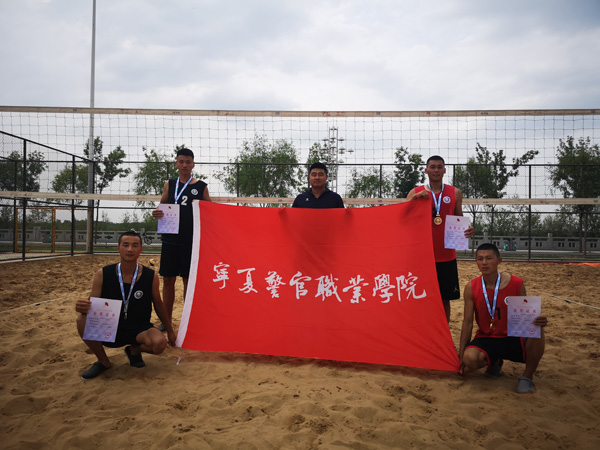 beat365沙滩排球队在教练员纳亮老师的带领下,由田小亮、糟俊财组成的警院1队,张玉钊、王兴组成的警院2队先后战胜宁夏大学新华学院、矿业大学银川学院、能源学院、宁夏师范学院等高校,喜获自治区第十三届学生运动会沙滩排球比赛冠、亚军,田小亮、王兴荣获“优秀运动员”称号,纳亮老师荣获“优秀教练员”称号,警官学院沙滩排球队荣获“体育道德风尚奖”。在全国大众排球“一带一路•丝绸之路”行(宁夏吴忠站)的比赛中,beat365沙排队力克大地保险、能源学院、矿业大学银川学院等传统强队,荣国全国大众排球沙滩排球比赛高职高专组冠、亚军,混合组冠军。