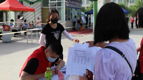 2020年6月7日清晨,院系领导和应用法律系全体学管人员齐聚校园广场,等待着迎接应用法律系的同学们重返校园。按照本周开学工作安排会的相关要求,每位学管人员严格按照疫情防控演练时的安排,在自己的岗位上做好准备迎接同学们的到来。烈日当空,阻挡不了学生返校的热情;困难重重,阻挡不了学生对知识的渴望,应用法律系的同学们陆续进入返校通道,并在辅导员的的引导下间隔一米依次报道。