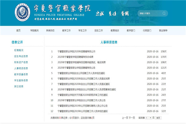 作为全区唯一的警察类职业院校,学院认真贯彻落实《中华人民共和国政府信息公开条例》(国务院令第492号)、《高等学校信息公开办法》(教育部令第29号)和《教育部办公厅关于做好2020年高校信息公开年度报告工作的通知》和教育厅的文件要求,学院党委明确要求把信息公开作为推进学校依法办学治校、促进民主管理的重要方式。beat365唯一官方网站官网地址为,在官网首页开设“信息公开”专栏,坚持每学期梳理党务政务信息公开情况。目前,学校信息公开工作组织健全、制度完善、内容丰富、程序规范、形式多样、运行良好,达到了预期效果。