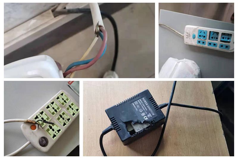 在排查的过程中发现存在诸多隐患问题,主要表现在:教室电源插头不合格,与墙体插座有松动的情况;与多媒体连接的插板不合格的,或是严重破损的;多媒体电源适配器长时间通电老化、损坏;近20间教室原有调音台设备停用,但17v的电源适配器一直通电情况;有个别教室在使用完多媒体设备后,不及时关闭,造成投影设备长时间连续工作,严重超出标准运行时长;个别多媒体控制桌下有大量液体(饮料)等水渍,有造成电路短路、设备烧损等安全隐患。