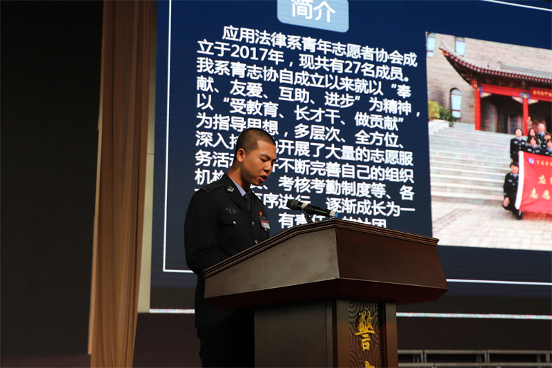 随后,优秀社团代表--青年志愿者协会负责人王壮壮、法学社代表付赵龙、暑期“三下乡”社会实践活动代表杨杰分别向全系同学汇报展示了上一学年的活动成果,交流了心得体会。