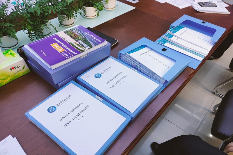 为加快推进学院“双高计划”建设,确保高质量完成建设目标,6月28日,“双高计划”领导小组组长、领导小组办公室主任张德军带领第三方审计公司专家、建设绩效考核组、领导小组办公室和主题教育办公室工作人员对2023年度上半年学院“双高计划”建设12个项目组开展考核。