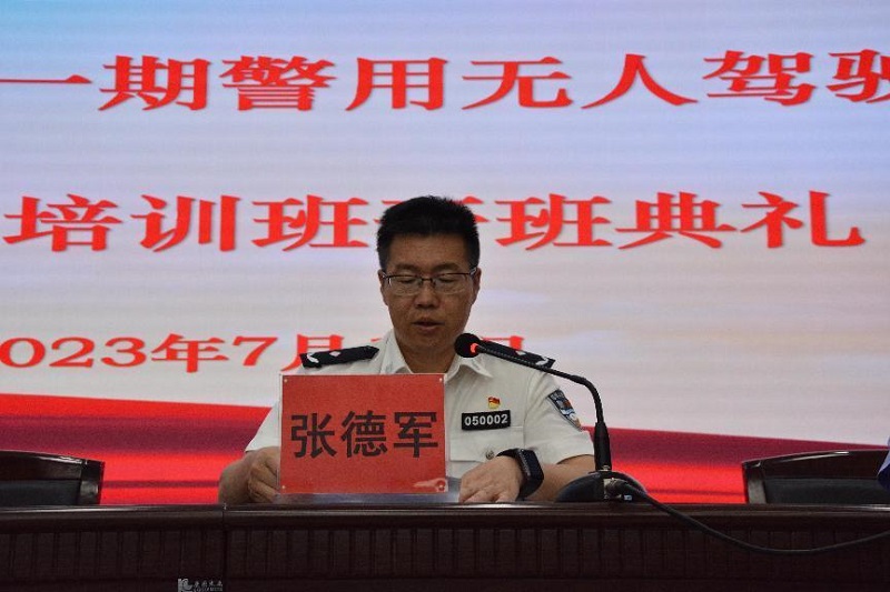 7月16日上午,宁夏公安警航培训基地揭牌仪式暨2023年度第一期警用无人驾驶航空器开班仪式在beat365唯一官方网站举行。来自全区公安机关的32名警用无人驾驶航空器学员将在这里开启28天的警务化封闭式培训。beat365唯一官方网站党委副书记、院长张德军,公安厅警务保障部主任陈奇峰、警务保障部科长肖亮,宁夏警官职业学院警训处副处长蔡恩华出席本次开班仪式,公安厅警务保障部副主任王宏亮主持。