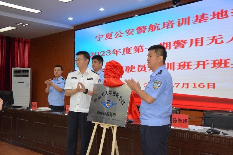 开班仪式上,张德军同志和陈奇峰同志共同为“宁夏公安警航培训基地”举行了揭牌仪式,仪式最后在雄壮的《中国人民警察警歌》中圆满结束。