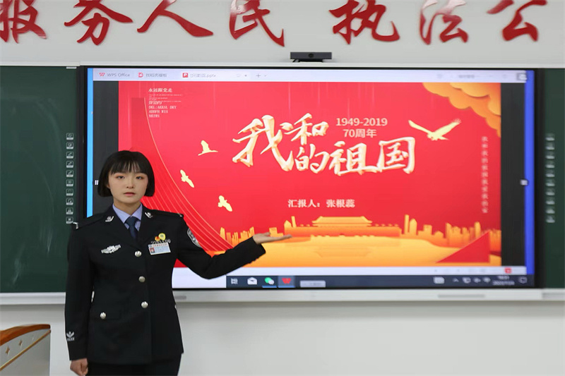 “党之荣光,吾辈承扬”,作为警校学子,张根蕊同学真诚地希望能够加入中国共产党。自入校以来,张根蕊同学一直担任班级卫生委员一职,她怀着高度的责任心和集体荣誉感,每天提醒同学按时做好卫生清洁,甚至时常独自一人处理班级卫生死角。她相信要做好一件事一定要有高度的责任心,只有认真履职尽责才能逐步达到完善的境地。她积极向党组织靠拢,坚持不懈学习党的理论知识,深入了解党的方针政策,时刻以党员标准要求自己。在本学期初,她终于成为了一名入党积极分子,那一刻,她的心情格外激动。