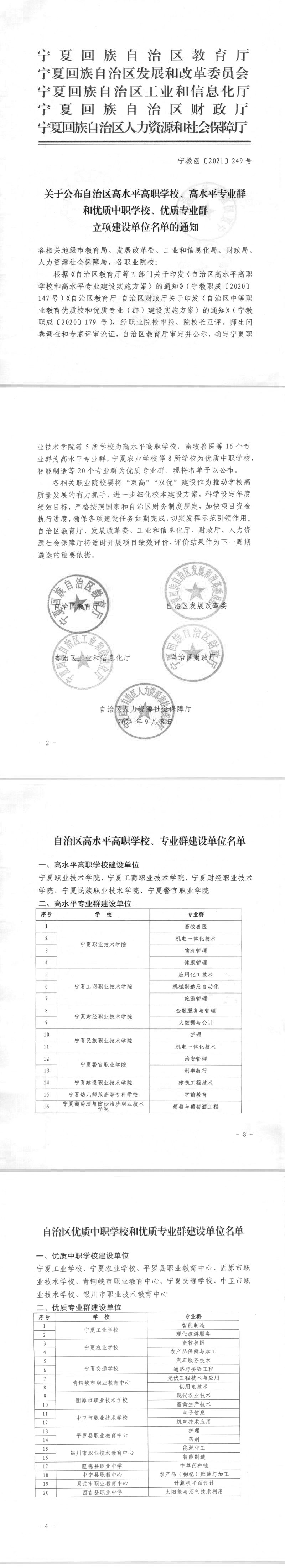 关于公布自治区高水平高职学校、高水平专业群立项建设单位的通知