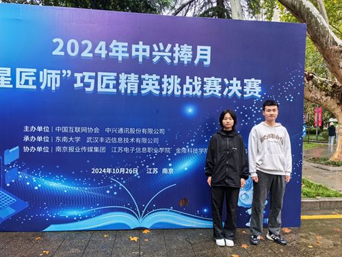 2024年10月27日,由中国互联网协会与中兴通讯共同主办,东南大学承办的第十四届中兴捧月“星匠师”巧匠精英挑战赛决赛在南京落下帷幕,学院信息与安防工程系杨丽老师指导司法信息技术专业学生盛佟、田静两名同学组建的“5G小警喜”团队凭借卓越的表现和非凡的技艺荣获国赛三等奖。