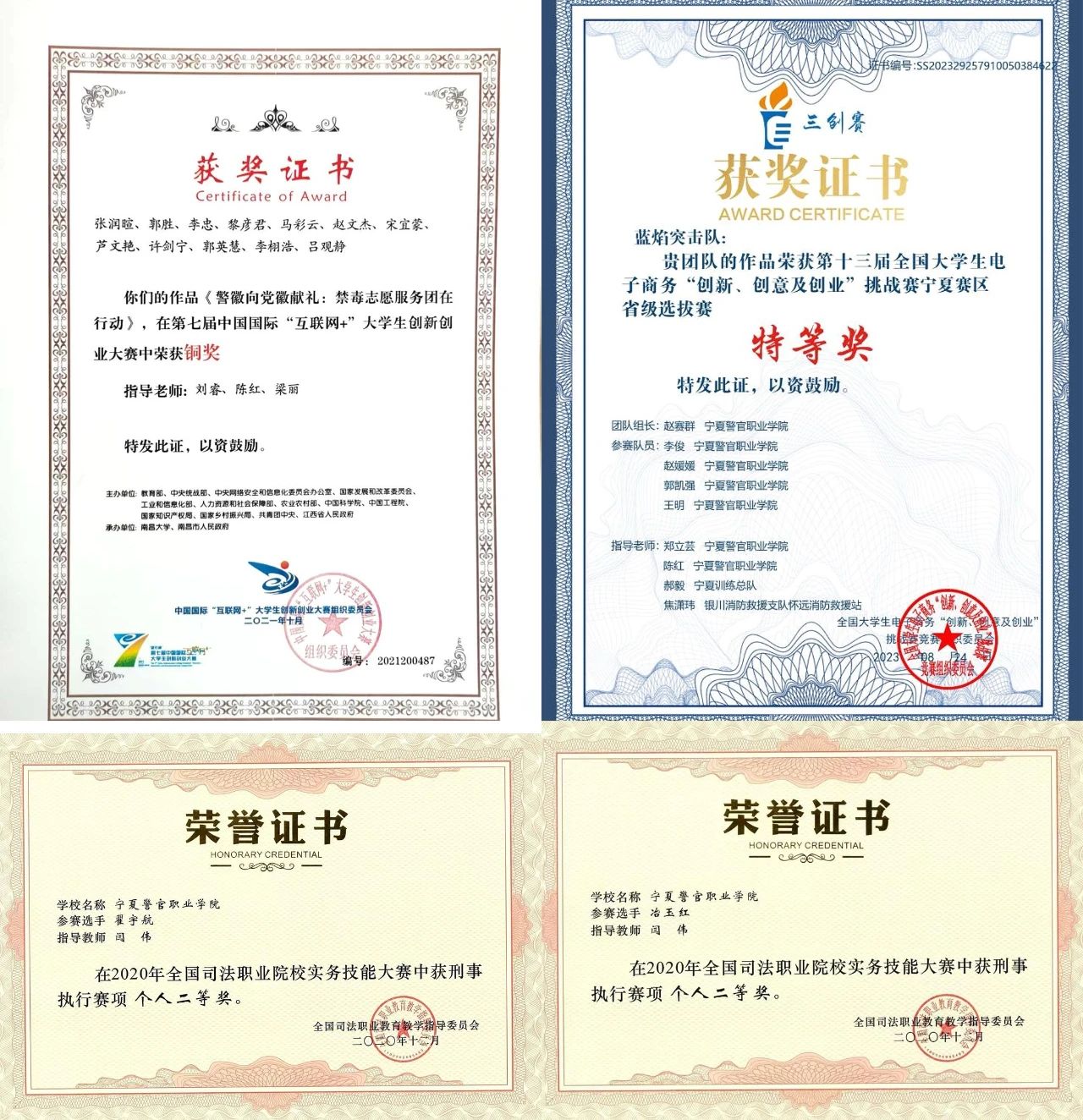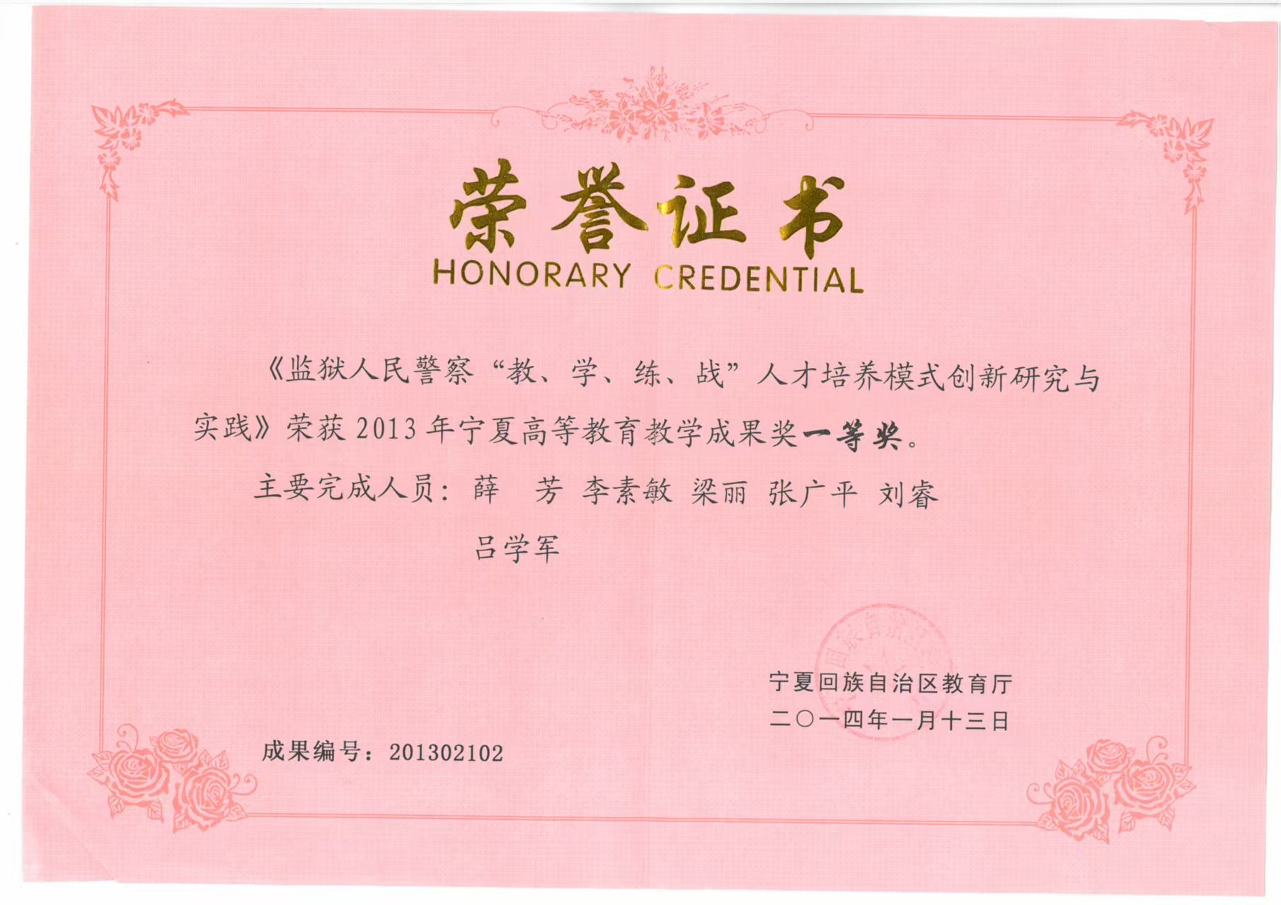 2004年监所管理专业成为自治区教育厅确定的重点建设的高等职业学院示范专业。2007年刑事执行专业被授予自治区级骨干示范专业。2008年5月宁夏司法警官职业学院被司法部确定为全国政法院校招录培养体制改革首批试点院校,承担了学院“一号工程”监狱管理试点学员的培养。2012年我系增设了刑事侦查技术试点专业,先后为内蒙古、新疆、甘肃、青海、贵州、陕西、宁夏、新疆生产建设兵团等8个省区培养监狱人民警察649名,分布在54所监狱,培养质量得到了用人单位的高度评价。2018年刑事执行专业获批自治区高水平专业建设。2021年,刑事执行专业群获批自治区高水平专业群建设,2024年,刑事执行专业群以优秀成绩通过验收。专业群教学团队先后为宁夏监狱系统举办了刑事器材使用培训班、狱内侦查骨干培训班、现场勘查培训班和视频侦查培训班,极大地提高了宁夏监狱系统现场勘查能力和狱侦能力。专业群教学成果显著,人才培养模式改革项目在宁夏高等教育教学成果奖评选中获得区级教学成果一等奖、司法部级教学成果二等奖。立项自治区教育厅教学名师项目2项;教育厅课程思政教育案例1项。