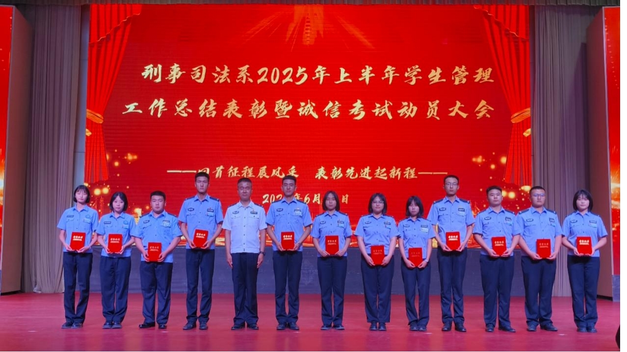 为深入贯彻落实党的二十大精神,积极响应习近平总书记关于青年成长成才的重要论述,进一步凝聚奋进力量、弘扬榜样精神。6月25日,刑事司法系召开2025上半年学生管理工作总结表彰暨诚信考试动员大会。学院领导、学生处、实践教学部、教务处等部门领导、刑事司法系系部领导、学员队及全体学生共同参加。