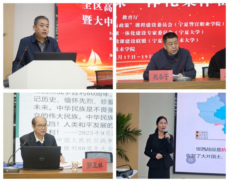 为全面学习贯彻习近平新时代中国特色社会主义思想,进一步将学习贯彻习近平总书记在纪念中国人民抗日战争暨世界反法西斯战争胜利80周年大会上的重要讲话精神引向深入,10月18日,在自治区教育工委、教育厅的支持下,beat365唯一官方网站马克思主义学院作为全区高校“形势与政策”课程建设委员会主任委员主动作为,联合宁夏大中小学思政课一体化建设专家委员会(宁夏大学)和全区高职院校思政课建设联盟(宁夏职业技术大学),在石嘴山工贸职业技术学院举办全区高校“形势与政策”教学展示暨大中小思政课一体化集体备课会。全区22所高校马克思主义学院(教学科研部)院长(主任)、形势与政策课程教研室主任,思政课教师代表,五市县思政教研员、中小学思政课教师代表共100余人参加。