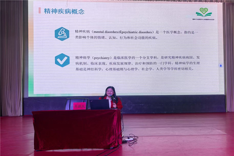 讲座中,张瑞莉主任紧密结合临床实践经验与校园心理健康工作实际,通过典型临床案例剖析、专业理论阐释及通俗化解读,系统讲解了常见精神疾病的识别要点、典型症状表现、主要发病诱因及科学应对策略。她着重强调,校园心理健康工作者是学生心理关怀的“第一道防线”,需具备一定的精神疾病辨别能力:既要能及时察觉学生潜在心理问题、捕捉细微心理异常信号,熟练运用“早发现、早介入、早疏导”的工作方法;也要通过科学引导,帮助学生消除对精神疾病的误解与偏见,避免因认知偏差延误干预时机。