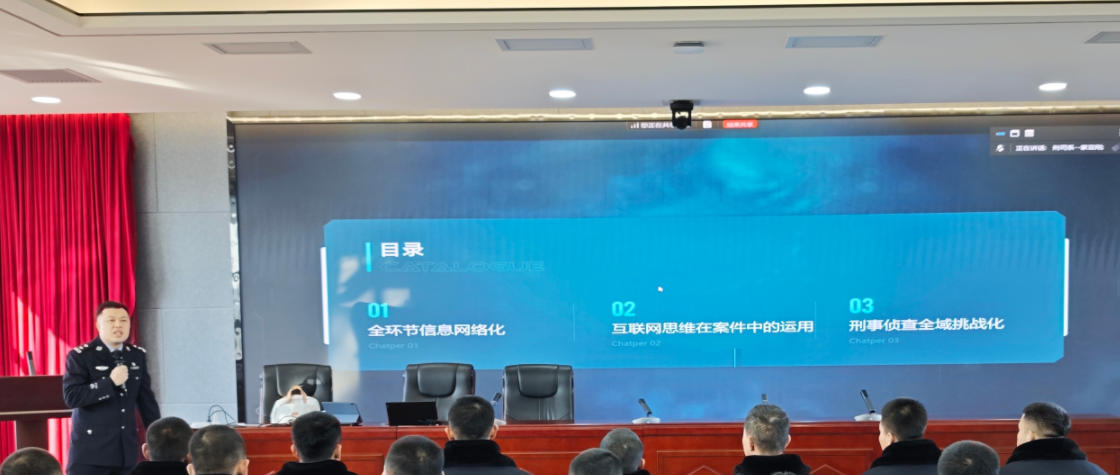 为提升警院学子对新型网络犯罪的认知与侦查实战能力,2025年12月5日,刑事司法系举办公安司法大讲堂。活动特邀贺兰县公安局李博警官主讲,全系600余名学生通过“线上+线下”方式参与学习,党总支副书记满君杰主持。
