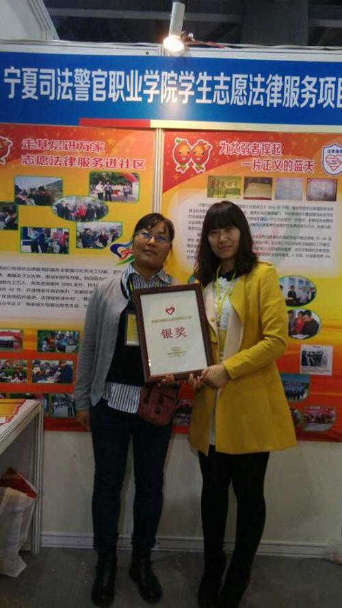 12月3日至4日,由团中央、民政部、中国志愿服务联合会、广东省政府、广州市委共同主办,中国青年志愿者协会、中国青年企业家协会、中国残疾人福利基金会、团广东省委、团广州市委、海珠区政府等单位承办的“志愿服务广州交流会暨首届中国青年志愿服务项目大赛”在广州保利世贸博览馆举办,宁夏司法警官职业学院法律援助站申报的“学生志愿法律服务”项目经过现场评审,喜获“银奖”。