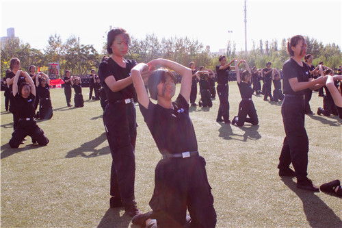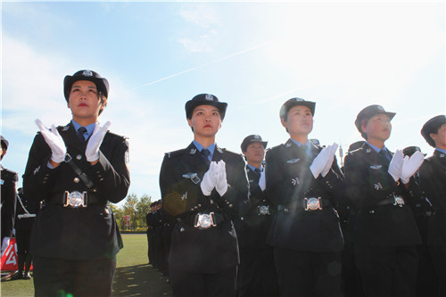 在洪亮的国歌声中,阅警式拉开序幕,为全院师生和家长上演了一场警务文化视觉盛宴,学院党委书记刘睿检阅了受训方队。同学们慷慨激昂的口号响彻学院训练场,新生军训大队的十六个学生方队,在院旗的引导下,意气风发、英姿飒爽,依次走过主席台。同学们气宇轩昂、脚步铿锵、队列整齐、口号响亮,充分展示了刻苦训练的成果,体现出beat365独具特色的警务化管理水平,赢得了在场观众们的阵阵掌声。刑事司法系、警训大队、信息与安防工程系以及应用法律系分别为我们带来了擒敌拳方阵、男子花式队列表演、女子反恐小队表演以及极具视觉冲击力的匕首操表演项目。