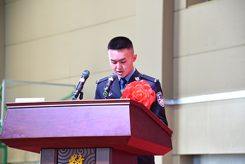 信息与安防工程系智能1801的区队长曹智祥代表获得国家奖学金学生发言,他说:“在警校生涯中自己并没有虚度光阴,在成长的每一个阶段都曾努力过、拼搏过,没有留有遗憾。作为警院学子要始终牢记“忠诚、责任、奋斗”的学院精神,在未来的人生道路上,用百倍的信心和万分的努力去迎接更大的挑战,用辛勤的汗水和不懈的奋斗谱写出更加美好的明天!”